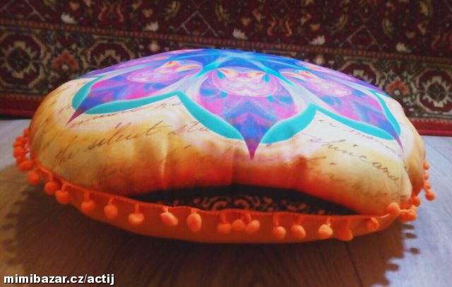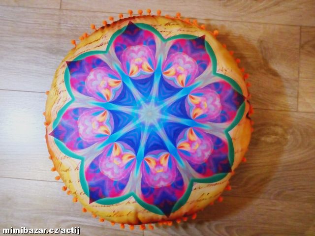 NOVÝ KULATÝ POLŠTÁŘEK - MANDALA - krásný originální dárek pro vaše blízké, líc bavlna, rub bavlna/polyester, polštářek má odnimatelný povlak, který lze prát na 40st., výplň duté vlákno - vhodný i pro alergiky. Hezké syté barvy - z rubu sytě oranžová.