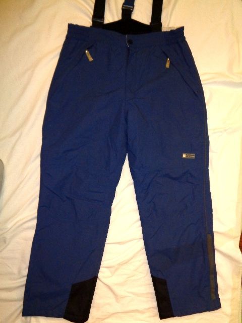 NOVÉ - JEN BEZ CEDULKY. OPRAVDU LUXUSNÍ ZNAČKA PORT LOUIS. HODNĚ TMAVĚ MODRÁ BARVA - TMAVŠÍ NEŽ NA FOTU. VELMI KVALITNÍ LYŽAŘSKÝ MATERIÁL (NÉ ŠUSŤÁK), UVNITŘ ŠEDÁ 100 % PES PODŠÍVKA - KLOUZAVÁ - DOBŘE SE OBLÉKAJÍ. MÍRNĚ VYVATĚNÉ - HODNĚ TEPLÉ A JEN TAK NEPROMOKNOU. MAJÍ ODNÍMATELNÉ GUMOVÉ KŠANDY A REGULOVATELNÉ PŘEZKY. VYŠŠÍ PAS A VYŠŠÍ ZÁDA. V PASE PO STRANĚ GUMKY. KNOFLÍK A POKLOPEC SE ZIPEM. VPŘEDU DVĚ KAPSY NA ZIPY. PO STRANĚ ŠEDÝ REFLEXNÍ PRUH. UVNITŘ NOHAVICE JSOU ZESÍLENÉ ČERNOU LÁTKOU. PO STRANĚ LZE OTEVŘÍT ZIPY. V NOHAVICÍCH PROTISNĚHOVÁ ZÁBRANA. DOPORUČUJI - OPRAVDU LUXUSNÍ KOUSEK.