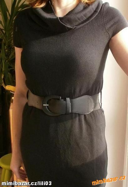 NÁDHERNÉ MODERNÍ ÚPLETOVÉ ČERNÉ ŠATY S PÁSKEM