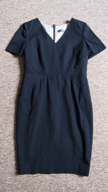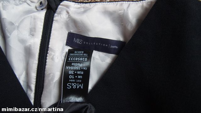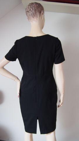 Jako nové, moc pěkné. Na pohled i omak dokonalé. Na bocích jsou zdobené prošíváním. Silnější materiál - vhodný i do chladných dní. Velice příjemné. S jemnou podšívkou. V zádech je zip. Elegantní střih. Velikost 38, délka: 92, š. dole: 42 - 47, boky: 50 - 54, pas: 40, průramky, prsa :47 - 48, rukáv od krku / dole: 29 / 7 cm. Mat. polyester, 24% viskoza, 3% elastan, podšívka polyester