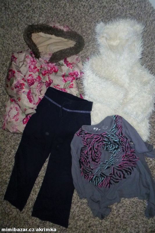 Sada podzimního Teddy kožíšku, bundo kabátku, tepláčků a šato-tuniky. Kabátek je krásný holčičí střih,hodně teplý, nadýchaný. Délka 45cm, hrudník 2×34cm,rameno 7+37cm rukávy+v rukávech jsou náplety aby do nich netáhlo. Vyteplený+uvnitř je heboučký a teplý flíz. Bezva kousek,jediná známka nošení je uvnitř na nápletech rukávů. Kožíšek je přírodně bílá-až světlounce krémova. Nošený ale bez chybičky. Skvělý kousek na podzim-chce přemáchnout,má lehce slehlé chloupky-po vyprání chce hodně proklepat a bude naprosto super. Heboučký a lehoučký-uvnitř pro fajn oblékání je kluzká podšívka. Délka cm,hrudník 2×31cm,rukáv od krku má 37cm.Kapucka má ouška. Tuička velmi příjemná 100%bavlna. Fakt krásná. Délka (uprostřed)44cm,u cípů 57cm,rameno 6+31cm mají 3/4 rukávky. Tepláky bavlna-pas 49-55cm,délka 62cm. Vše nutno vyprat potom bude TOP-zohledněno v ceně. V případě zájmu nakoukněte , je tu toho mnohem víc a třeba vám v ceně jednoho poštovného 200,- ( zásilkovna 80,- ) padne ještě něco do oka a využijeme ho na 100% + při nákupu nad 1000,- je pošta zcela Grátis..!!