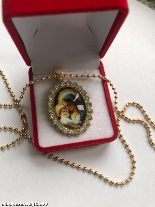 Madonka se zirkony z chir oceli pozlacená SKLADEM