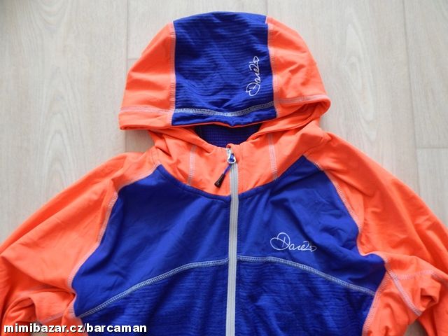 Pěkná sportovní, outdoorová mikina, tmavě modrá s neonovou oranžovou, pružná, mírně projmutá. Hezký stav.
