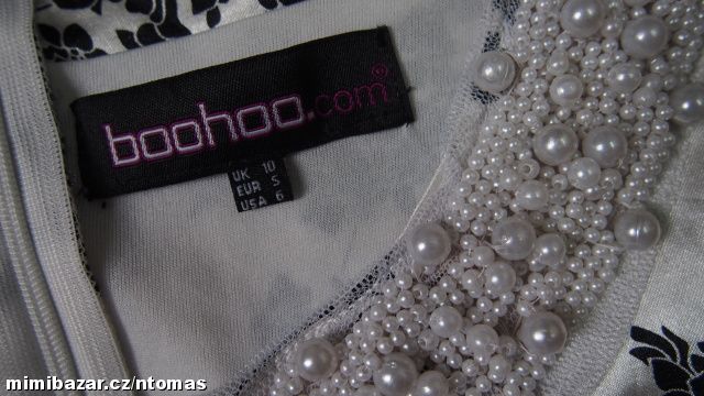 Boohoo černobílé saténové šaty s perličkami V.S