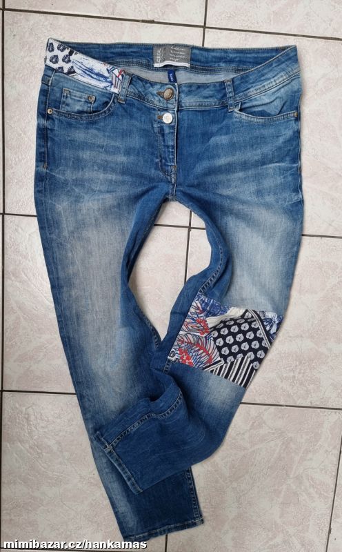 Džíny jsou šité v krásném a slušivém střihu, skvěle prošité a propracované do posledního detailu, dole na nohavicích zdobeny zipy, mají pěkně prošité zadní kapsy. prodávám bez pásku. Materiál 87% bavlna+12% polyester+1% elastan. Velikost je uvedena 32,…