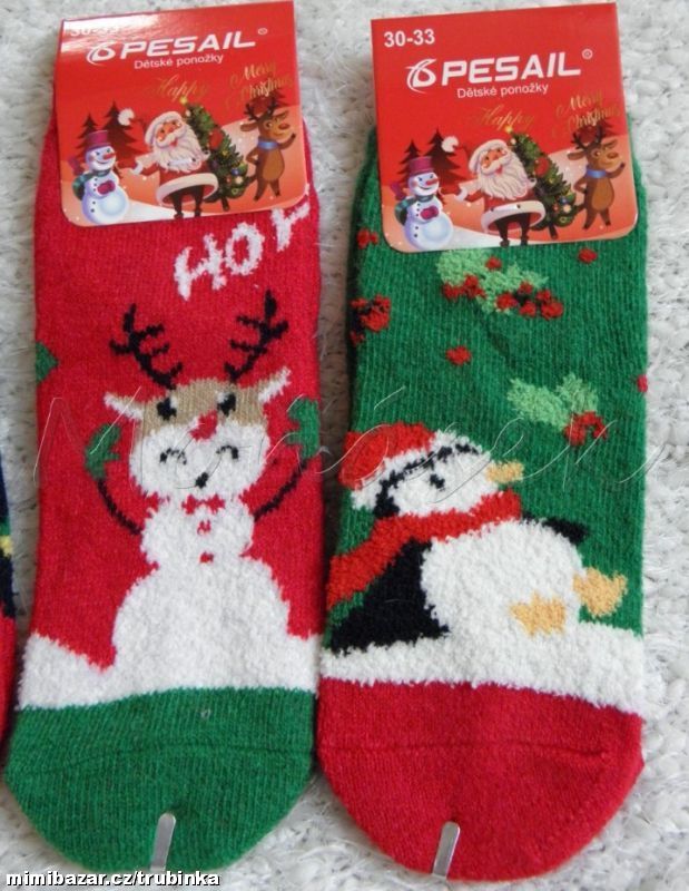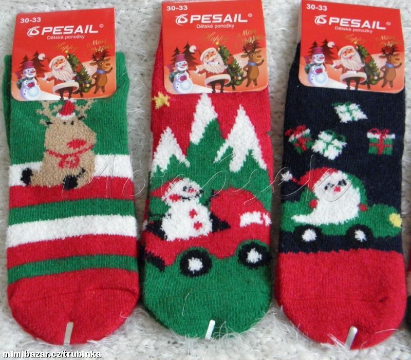 Teplé vánoční ponožky, bez protiskluzu (takže je dostanete i do bot).