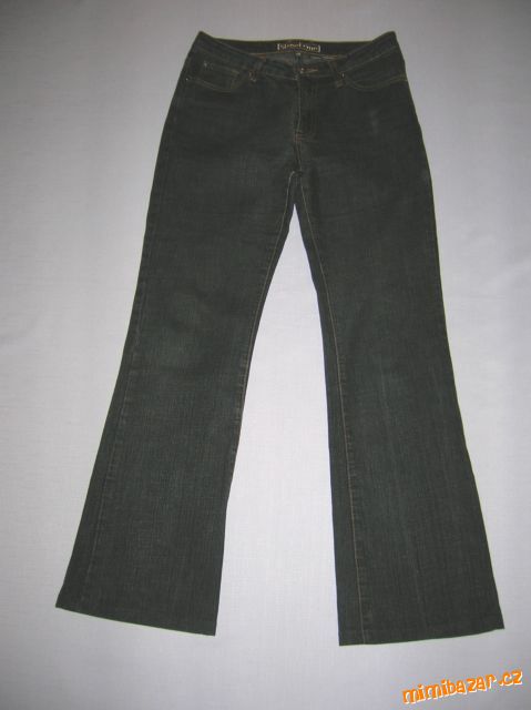 Bĺé kalhoty z lehké pružné rifloviny.Velikost odhaduji dle rozměrů na 36, kam také zařazuji. Kalhoty mají široký pásek 5,5 cm, vyšší sed. Vpředu i vzadu kapsy. Jsou v hezkém stavu.