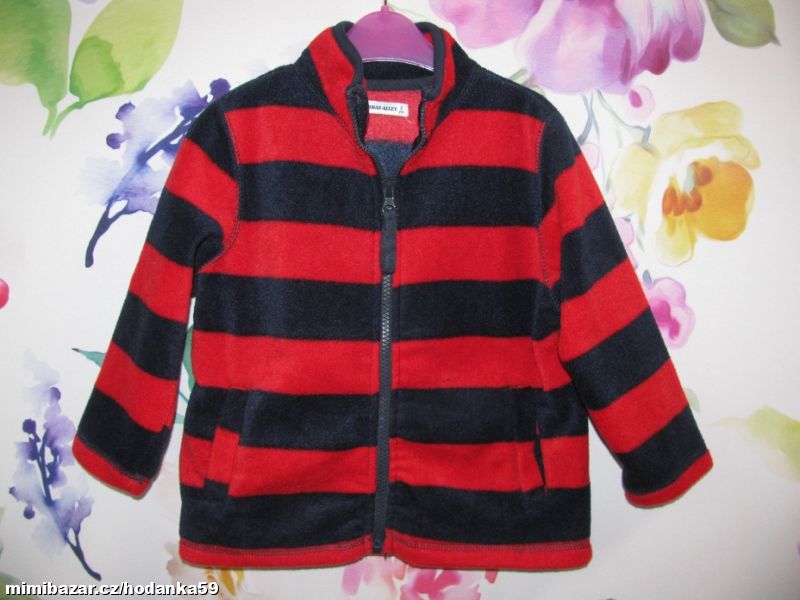 Tmavě modrá bavlněná mikina, lemy do nápletu, s malým vyšitým dinosaurem. 80% bavlna, 20% polyester.
