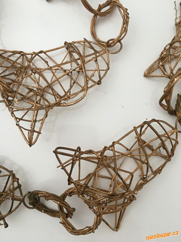 Zvonečkový řetěz ze zlatého drátku - délka 153 cm, délka zvonečku 13 cm, cena 90 Kč.