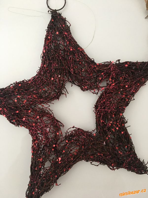 Hvězda z červeného drátku - délka 25 cm, cena 50 Kč.