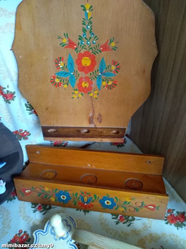 Malovaná polička na kořenky, překližka, používaná, běžné známky použití-55kč