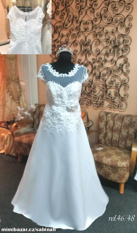 BÍLÉ, KRAJKOVÉ SVATEBNÍ ŠATY vel.46