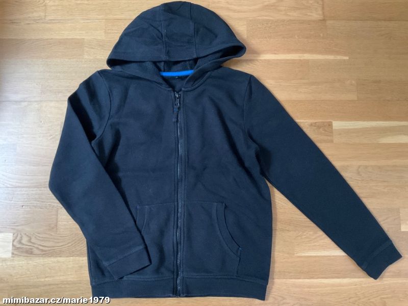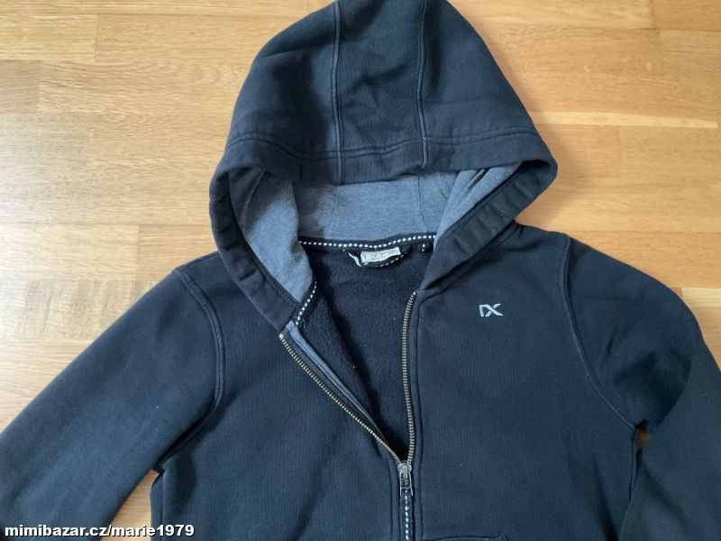 Černá s bílými šňůrkami - Next - pěkný stav. Šíře pod průramky 43 cm, délka zad od kapuce 50 cm, délka rukávu od kapuce 59 cm 110,- Kč