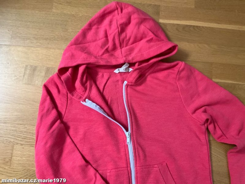 Růžová - HM - velice dobrý stav bez vad, šíře pod průramky 41 cm, délka rukávu od kapuce 62 cm, délka zad od kapuce 45 cm 120,- Kč