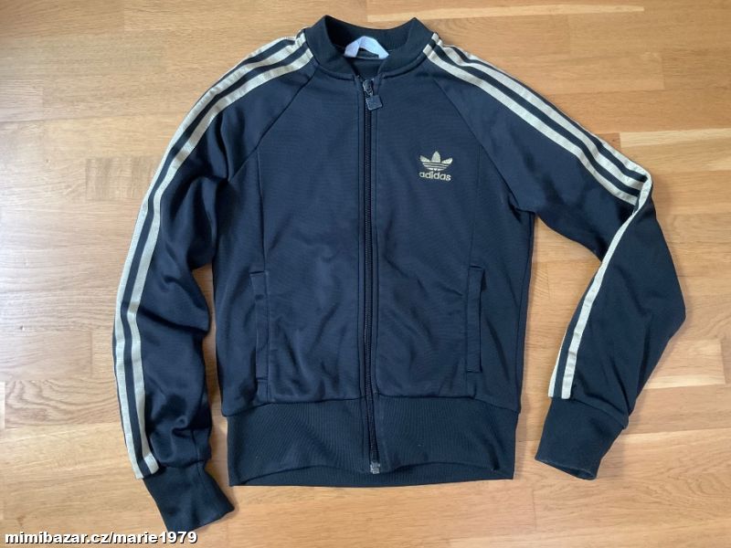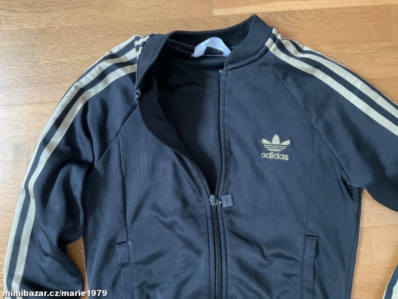 Černá se zlatými pruhy - Adidas - pěkný stav. Šíře pod průramky 41 cm, délka zad 55 cm, délka rukávu od límce 67 cm 240,- Kč