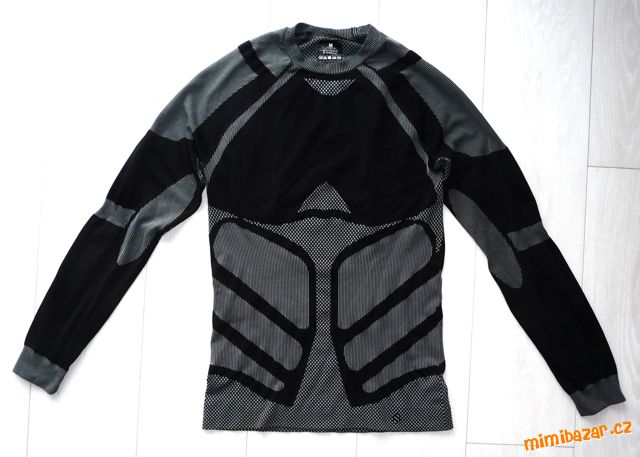 Prodám podvlíkací termotričko, vel. značená M. Černá barva, v kombinaci se šedou, zajímavě řešené. Některé části jsou různě strukturované, tvoří různé obrazce. Po těle šité jako bezešvé. Rukávy do rantlu, nevyhrnují se. Funkční materiál 63% polyamid, 37% polyester, vysoce elastický, přilne k tělu. Možnost prakticky celoročního nošení, lze využít jako podvlíkací termotričko na lyže, jako běžecké nebo pod cyklodres, případně na jakýkoli sport v chladnější dny. Střihově i typově je unisex. Tričko je ve výborném stavu, jako nové, bez vady. Délka 68cm, šířka pod průramky 43,5cm, šířka po těle 38,5cm, délka rukávu od krku 77,5cm, vše měřeno v klidu, natáhne se. Cena 280Kč + 35Kč poštovné obyčejně nebo + 82Kč doporučeně nebo 69Kč Balíkovna