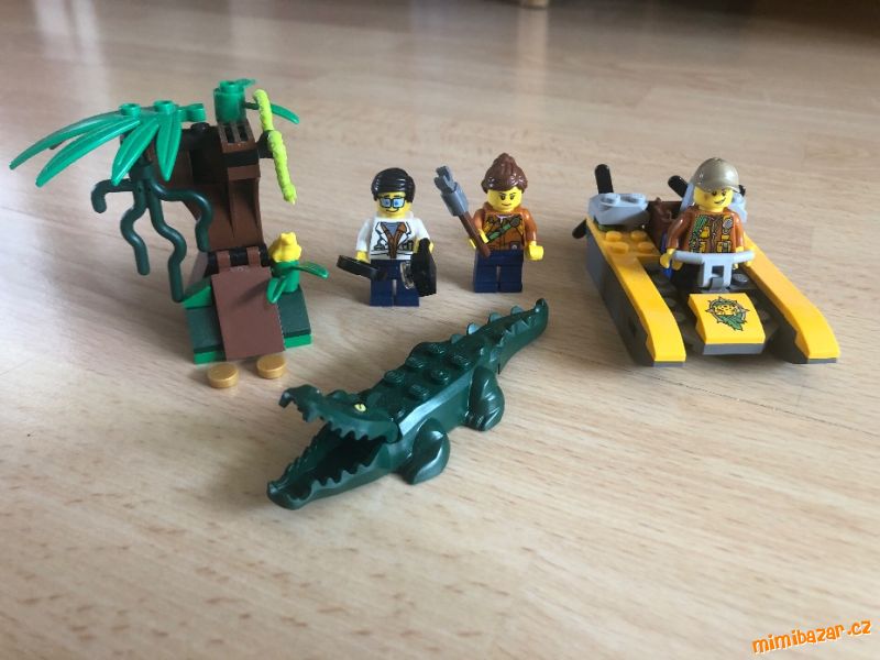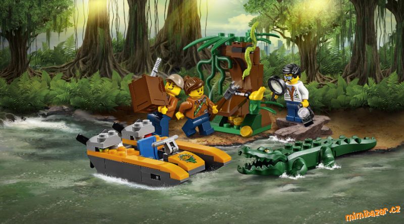 Součástí jsou tři mini figurky: průzkumník do džungle, vědec a řidič člunu, navíc figurky krokodýla, hada a žáby.