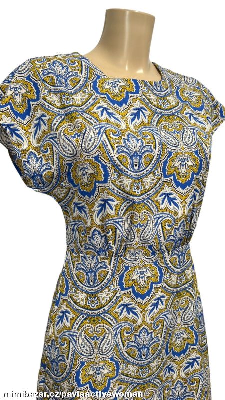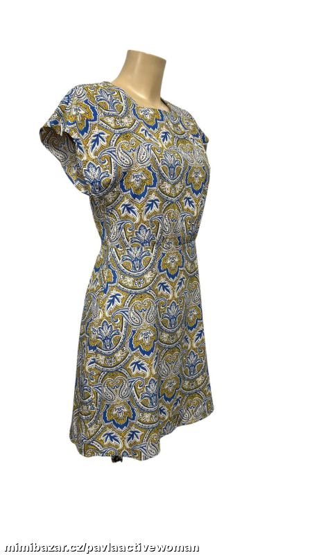 DLE MNE NOVÉ, NENOŠENÉ, TOP STAV, BEZ VADY, VEL. PSANÁ S, RADĚJI MĚŘTE, LEHKÉ, VZDUŠNÉ, MODRÁ + BÍLÁ + HOŘČICOVÁ, ZIP NA BOKU, LEHKÉ VZDUŠNÉ, PŘÍJEMNÉ, POHODLNÉ, ROZMĚRY V DETAIL FOTO !!!!!!
