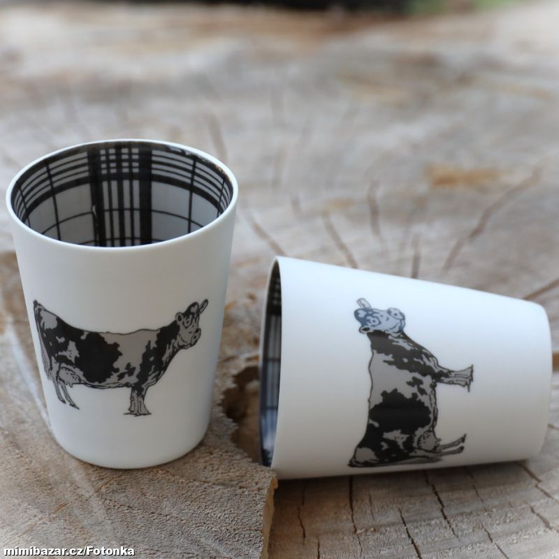 Porcelánový bílý kalíšek, hrnek, kráva sada 2 ks