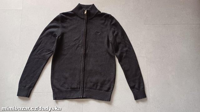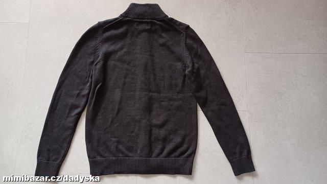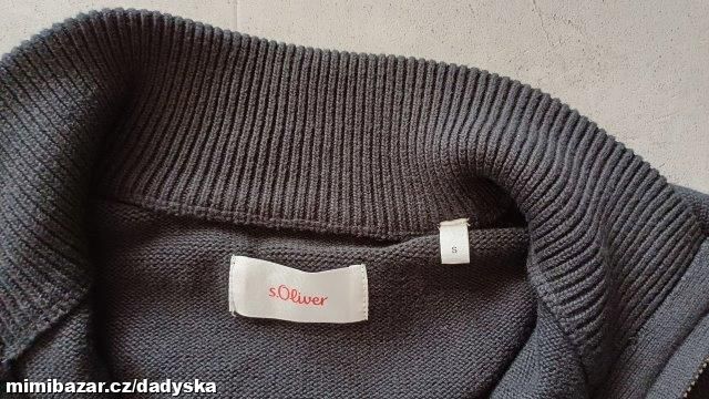 Pánský pletený černý pulovr na zip S´OLIVER vel S. 100% bavlna. Délka zad 64cm, rameno 11cm, délka rukávu 65cm, šířka pod průramky 46cm. Nevhodný dárek, jen vypraný.