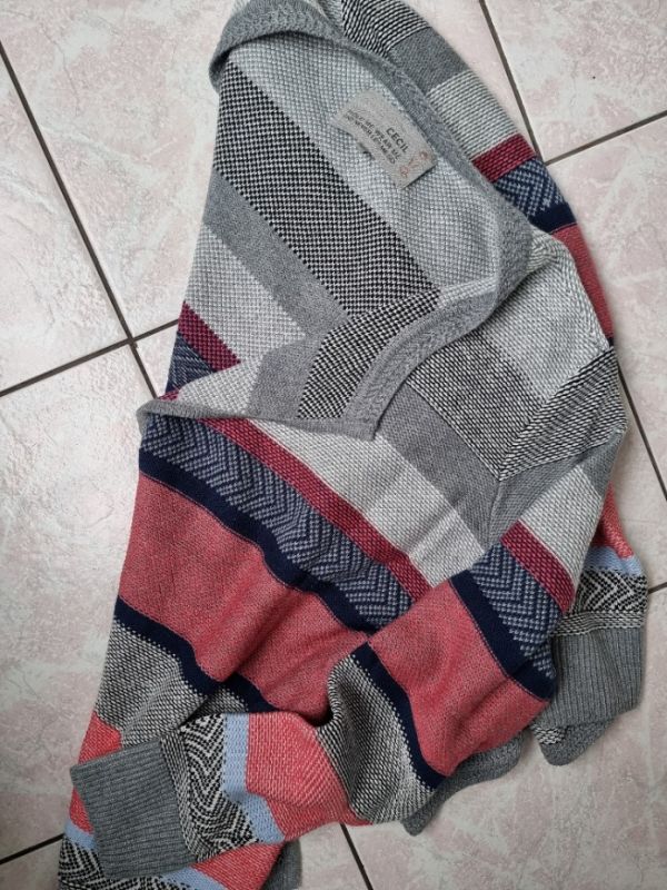 Cardigan je laděný do krásných barev,dobře kombinovatelný s modrým, šedým nebo starorůžovým tričkem, je pohodlný a slušivý. Materiál příjemný nekousavý 50% polyacryl+50%bavlna. Perfektní stav, na oko jako nový. Měřím při volném položení šev na šev,tedy můžete přidávat cm. Velikost je uvedena XL,dle mír odpovídá cca 46,měřte prosím. Celková délka 68cm, šířka pod průramky 63,5+cmx2, pas cca 61,5+cmx2, šířka dole 62+cmx2, délka rukávu od krku 75cm, od prošití v rameni 61,5cm.