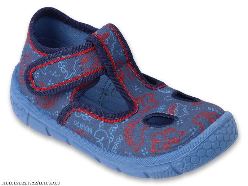 Chlapecké bačkůrky Befado s velmi lehkou, prodyšnou, protiskluzovou a velmi ohebnou podrážkou, zpevněná pata a boky pro správnou stabilizaci chodidla - vyvinuto ve spolupráci s dětskými ortopedy. Zapínání na suchý zip okolo kotníku. Dva otvory na špičce, aby se nožička tolik nepotila.