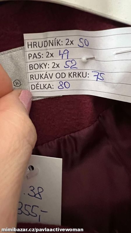 DLE MNE NOVÉ, NENOŠENÉ, TOP STAV, BEZ VADY, VEL. ODPOVÍDÁ 38, RADĚJI MĚŘTE, VÍNOVÁ, LEHKÁ PODŠÍVKA, VHODNÝ JAKO PŘECHODOVÝ, ROZMĚRY V DETAIL FOTO !!!!!!!!