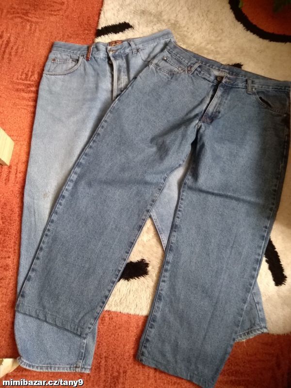 2-Bavlněné džíny z klasické džínoviny jsou do pasu, přes stehna širší, zn.Buck Rojer, nošené pěkné jen nohavice dole maličko šouplé-viz foto ,…