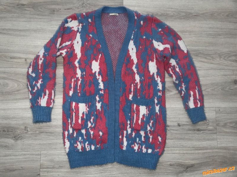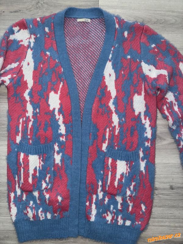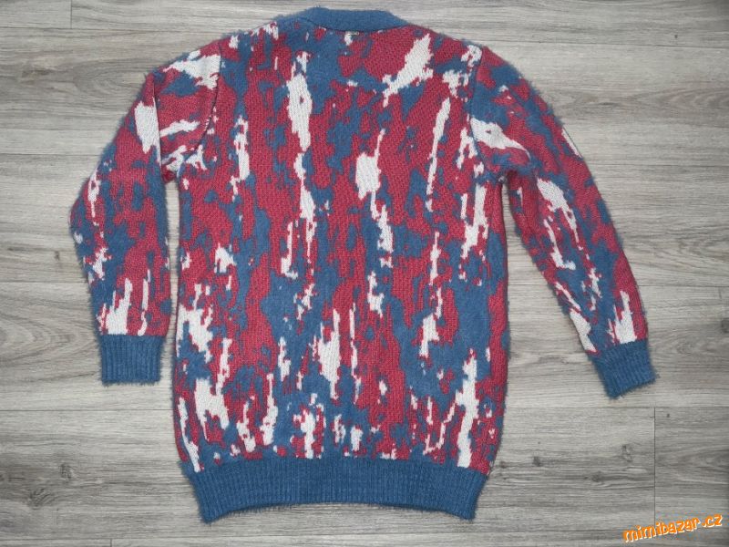 Rozměry: délka cca 77 cm, od podpaždí k podpaždí cca 49 cm, ramena měřeno od švu ke švu cca 38 cm, rukáv měřeno od ramenního švu cca 60 cm.