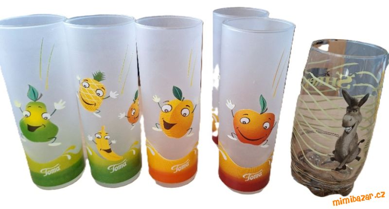 skleničky Toma - jablko (2x), meruňka, tropické ovoce, hruška - 30 Kč