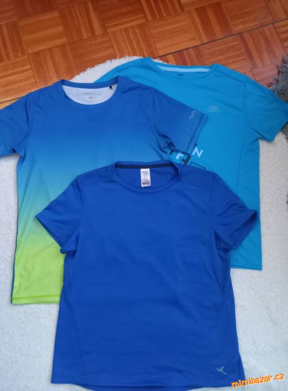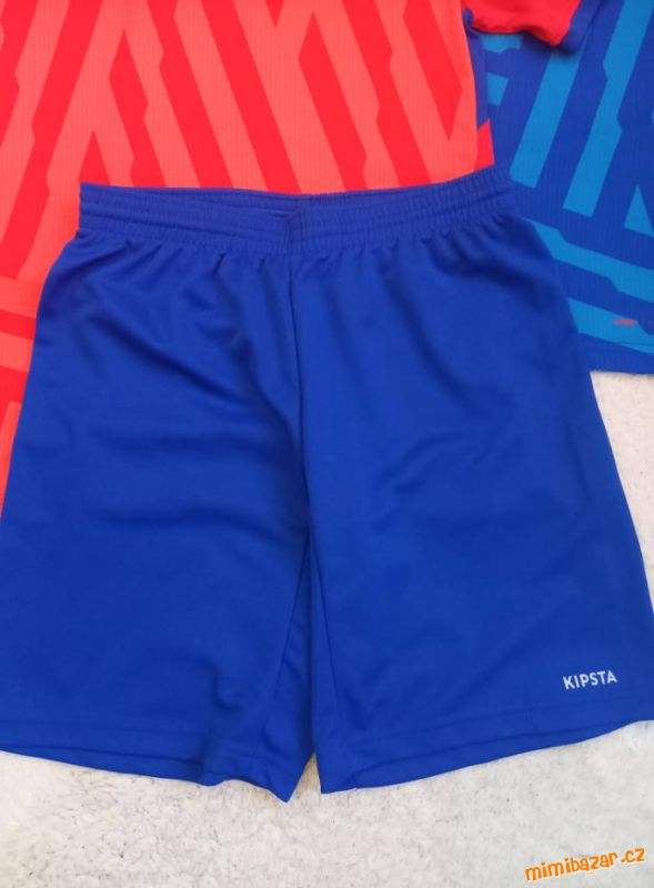 2 trika + 1 kraťasy na fotbalové tréninky zn. Kipsta (Decathlon). Nošeno úplně minimálně a jen synem, jako nové (má toho vždy více). Barvy výrazné - červená, oranžová a odstíny modré. Cena za vše dohromady. Velikost 12-13 let/151-160cm. U triček lehký, prodyšný, texturovaný materiál.