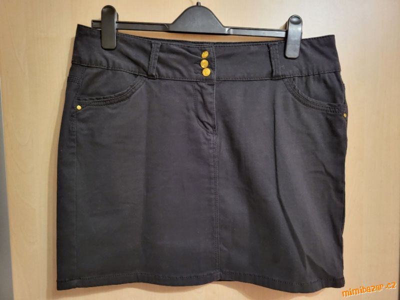 Úplně nová, nenošená, už ji nezapnu. Tenčí černá nepružná látka s hezkou podšívkou. Zapínání na zip na boku. Vzadu 2 falešné kapsičky.