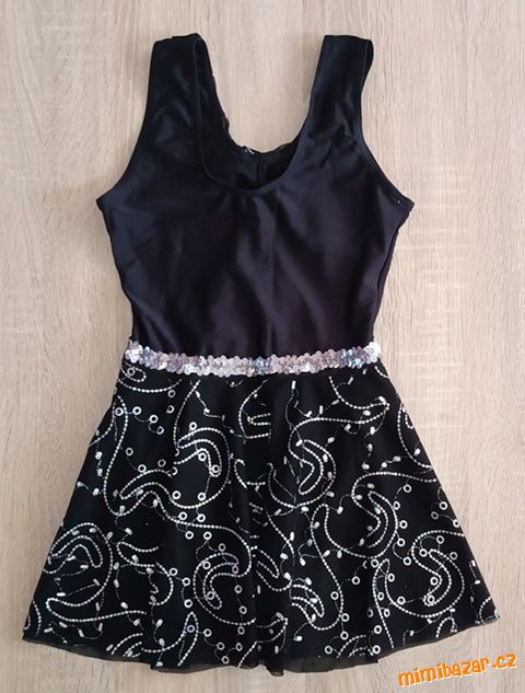 Nádherný dres na slečnu, barva černá, zdobený lesklými prvky, vázáním u krku, sukýnka, bez rukávů, obléká se přes výstřih, moc pěkný stav.