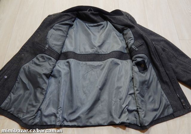 Super frajerský pánský vlněný kabát s podšívkou, na zip + druky. Moc pěkný stav, bez poškození.