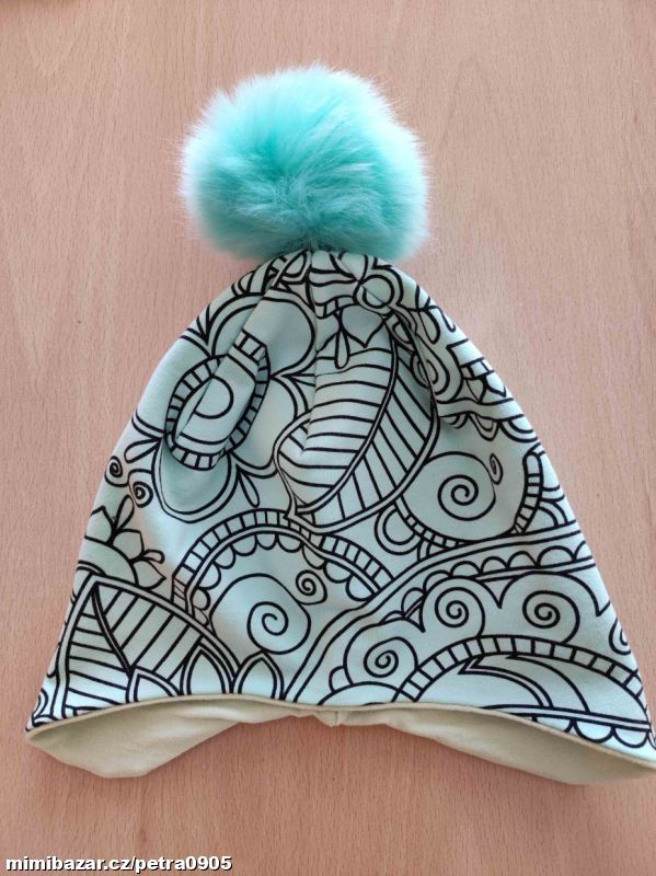 Čepice je ušitá z teplákoviny a podšitá úpletem