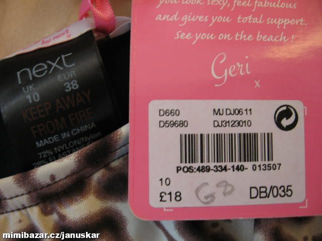 Plavkové kalhotky / bikiny Next nové s visačkou, uvedená velikost EUR 38, UK 10, v reálu menší, výška měřeno středem 20,5cm, pas 35-43cm, přední sed 22,5cm, zadní sed 19,5cm, plavková podprsenka 100% stav, vyztužené košíčky s kosticemi, nastavitelná délka ramínek, uvedená velikost S, šířka spodní části při zapnutí 31,5cm, po natažení až 35cm (obvod x2), cena dvojdílného kompletu 299Kč ( + poštovné)..