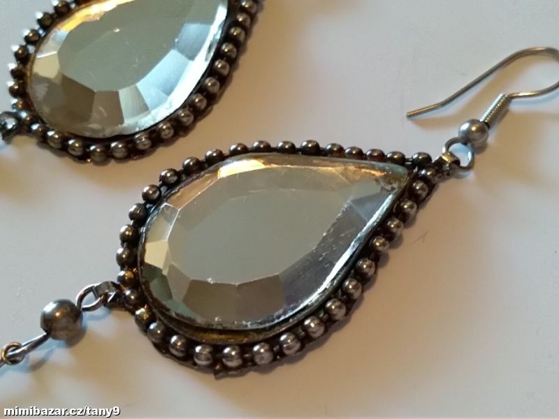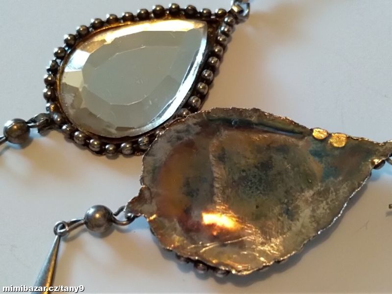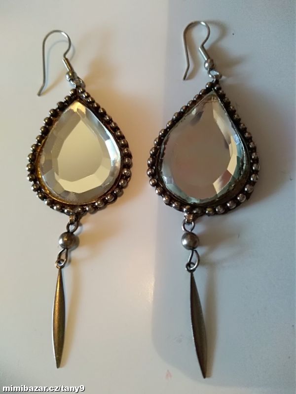 Velká zrcadlová kapka, kov+zrcadélko, délka celková 9cm, jsou udělané ze starého vintage náhrdelníku, mají jen nový háček a tu spodní tyčinku-100kč
