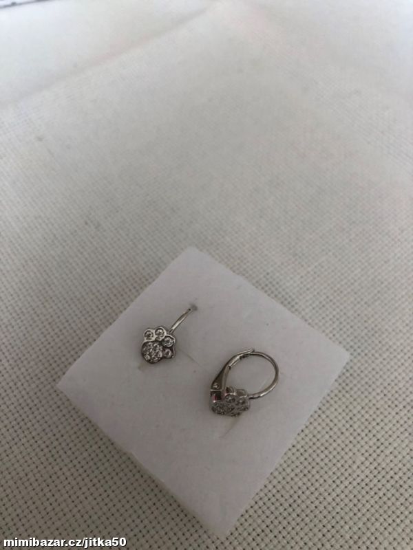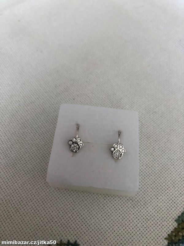 Náušnice ze stříbra s jakostním označením 925/1000 povrchově upravené rhodiováním. Náušnice jsou dekorovány motivem psích tlapiček bohatě zdobených zirkony.