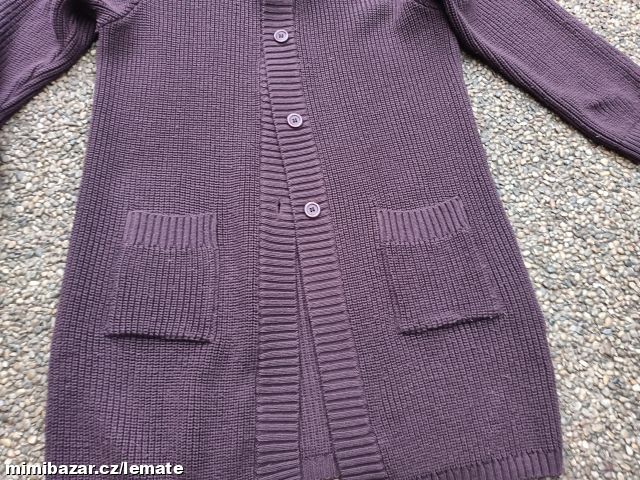 Dlouhý svetr propínací na knoflíky, se dvěma kapsami.