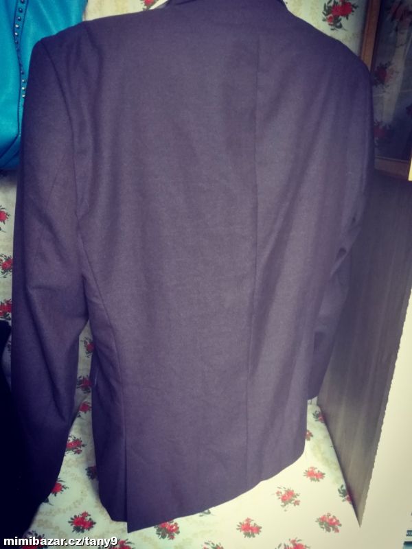 Druhé fialovohnědé sako a béžová košile také v bazárku.
