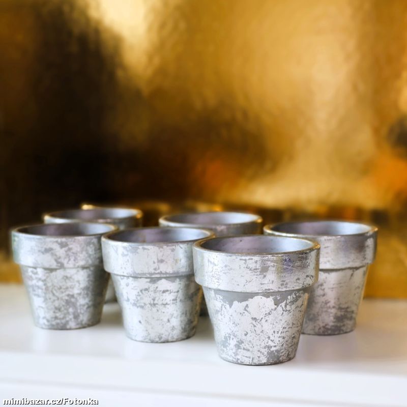 6x stříbrný květináč na svíčku, v. 7,5 cm