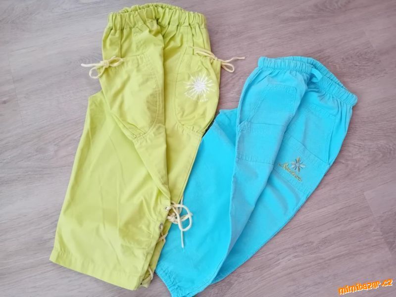 Prodám dvoje dětské lehké kapsáčové kalhoty na léto.Šité z velmi příjemné bavlny.