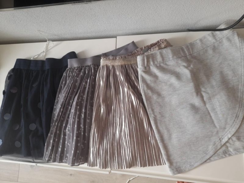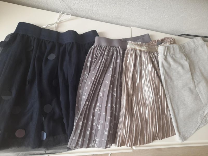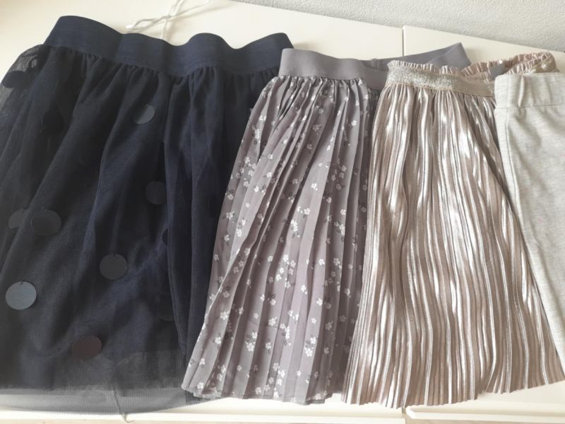 Nošené minimálně, krásné. Tm. modrá nová Lindex. Zlatá a kytičkovaná - Little Kids, šedá - bavlněná s nopíkama - Reserved, ta má vel. 152, ale je mnohem menší.