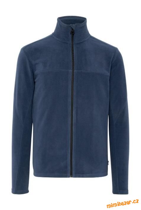 Fleecová mikina na muže, barva tmavě modrá, bez kapes, stojáček u krku, zapínání na zip s krytím brady, na zádech vytlačené veliké logo značky, nenošená.