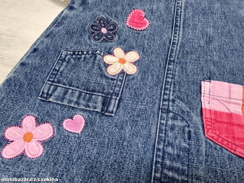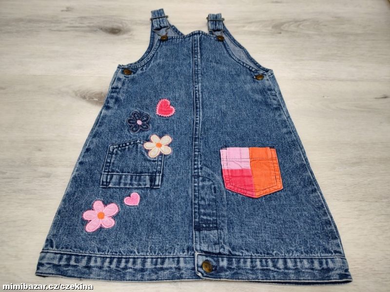Krásná džínová šatovka s kapsičkami a výšivkami, délka ramínek je nastavitelná. Nošená, ve výborném stavu.