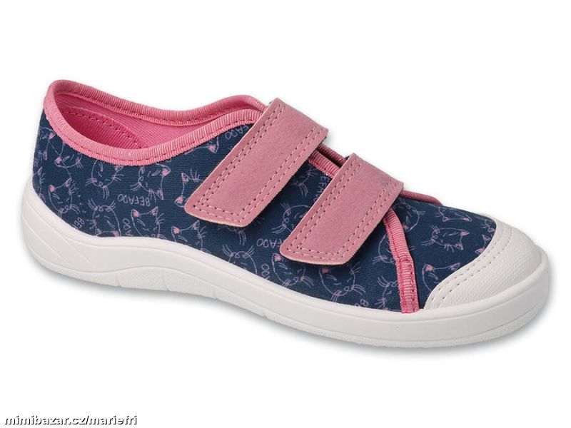 Dívčí bačkůrky Befado s velmi lehkou, prodyšnou, protiskluzovou a velmi ohebnou podrážkou, zpevněná pata a boky pro správnou stabilizaci chodidla - vyvinuto ve spolupráci s dětskými ortopedy. Zapínání na suchý zip přes nárt.