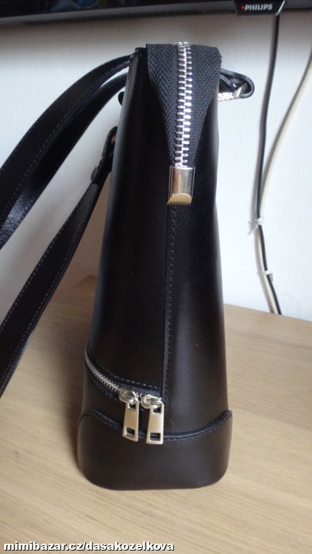 Asi 2x použitá, je jako nová - stav viz. foto. Silná, pevná kůže, která drží tvar. Zip ve spodní části je jen na ozdobu, rozepnout jde, ale je pod ním jen látka, není tam kapsa. Zapínání na zip, uvnitř rozdělená na 3…
