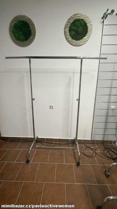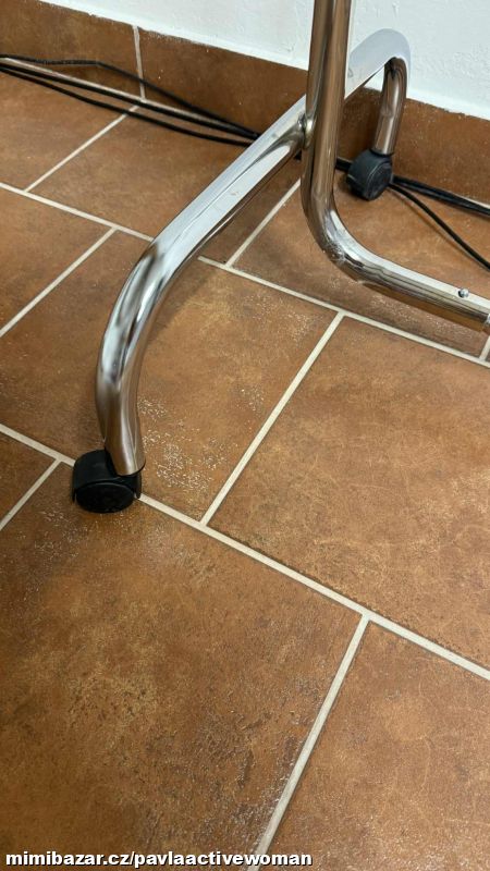 Používaný 2 roky na prodejně, bez vady, plastová kolečka, chrom, nosnost 70 kg