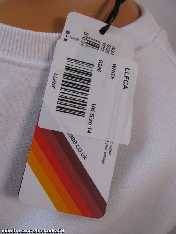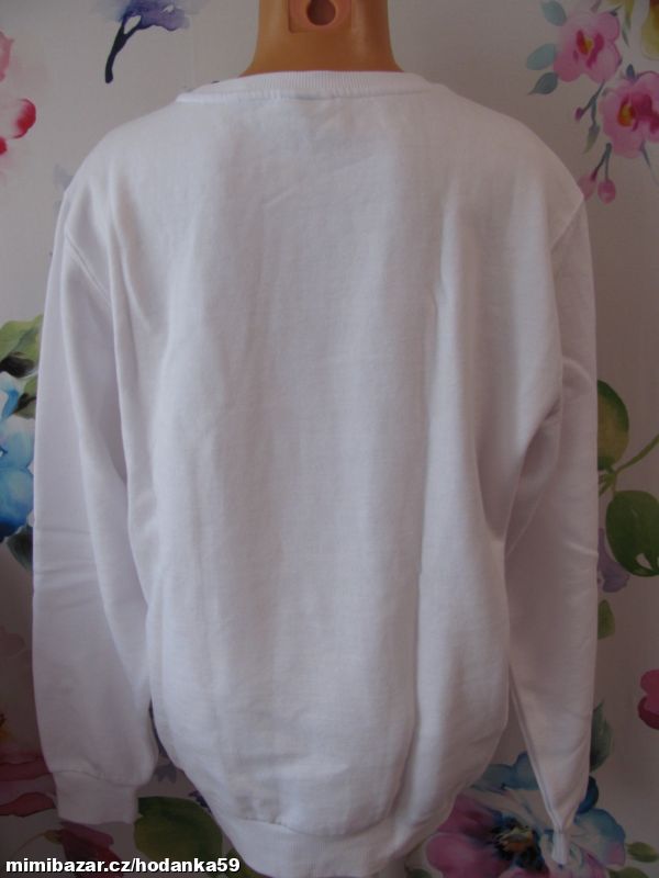 Krásná bílá bavlněná mikina, pružné lemy, potisk-logo, 80% bavlna, 20% polyester. Unisex
