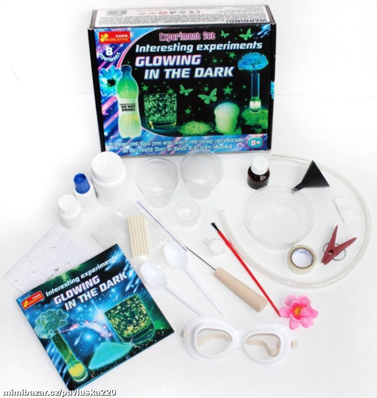 Světélkování - experimentální dětská vědecká sada pro vytvoření 8 pokusů. Svítí ve tmě - fosforeskuje.